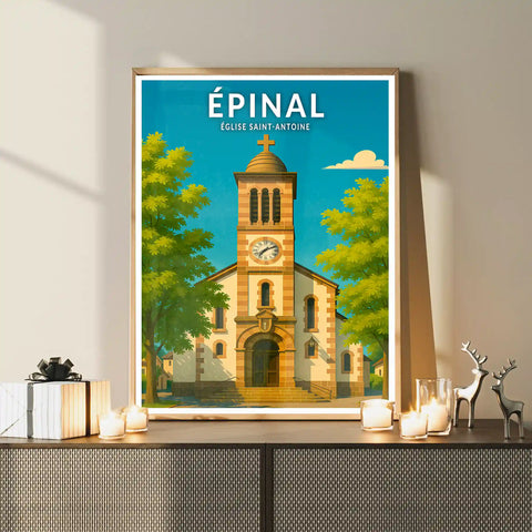 Affiche de l’Église Saint-Antoine d’Épinal – élévation gothique au bord de la Moselle