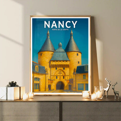 Affiche de la Porte de la Craffe à Nancy – vestige médiéval aux tours jumelles