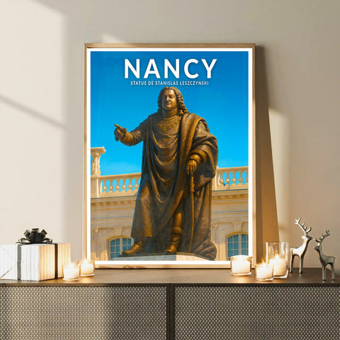 Affiche de la Statue de Stanislas Leszczynski à Nancy – figure royale au centre d’un chef‑d’œuvre urbain