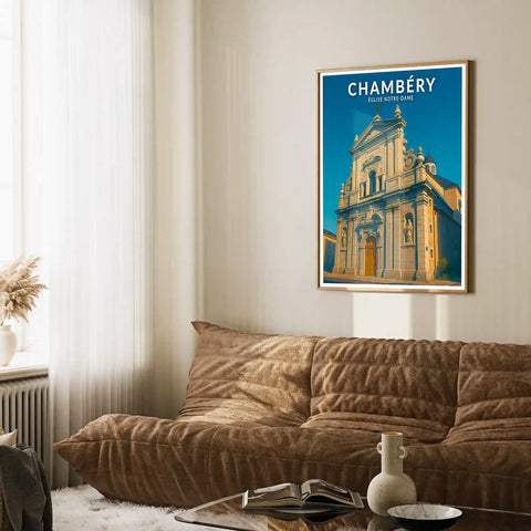 Affiche de l’Église Notre‑Dame à Chambéry – silhouette sobre au cœur du tissu ancien