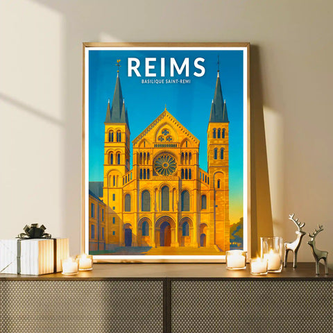 Affiche de la Basilique Saint‑Remi à Reims – monumentalité romane et calme monastique