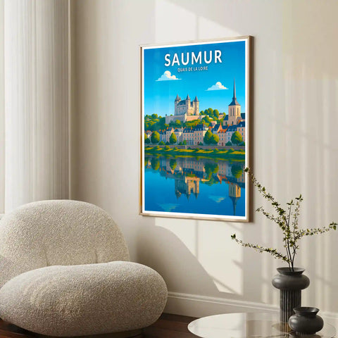 Affiche des Quais de la Loire de Saumur – reflets paisibles au pied du coteau